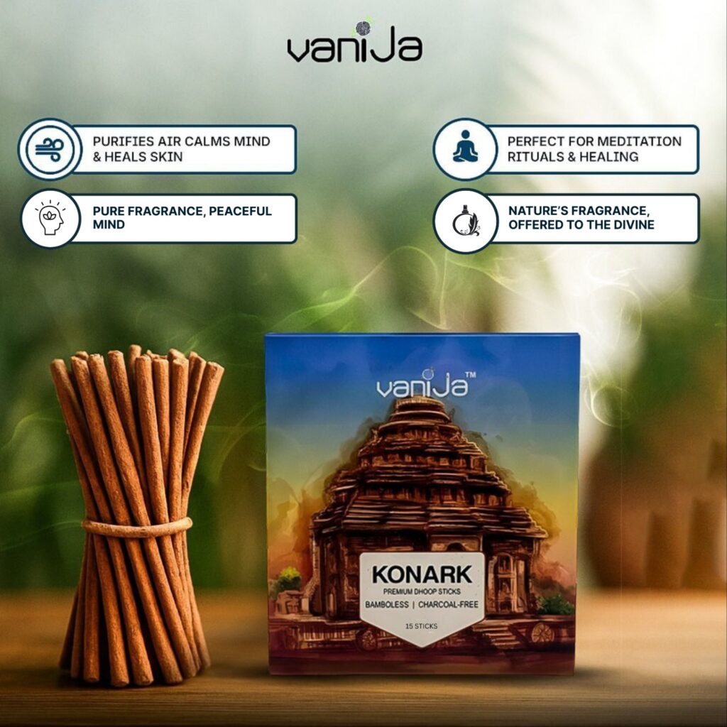 Vanija Konark Dhoop is crafted from medicinal and aromatic plants sourced from the